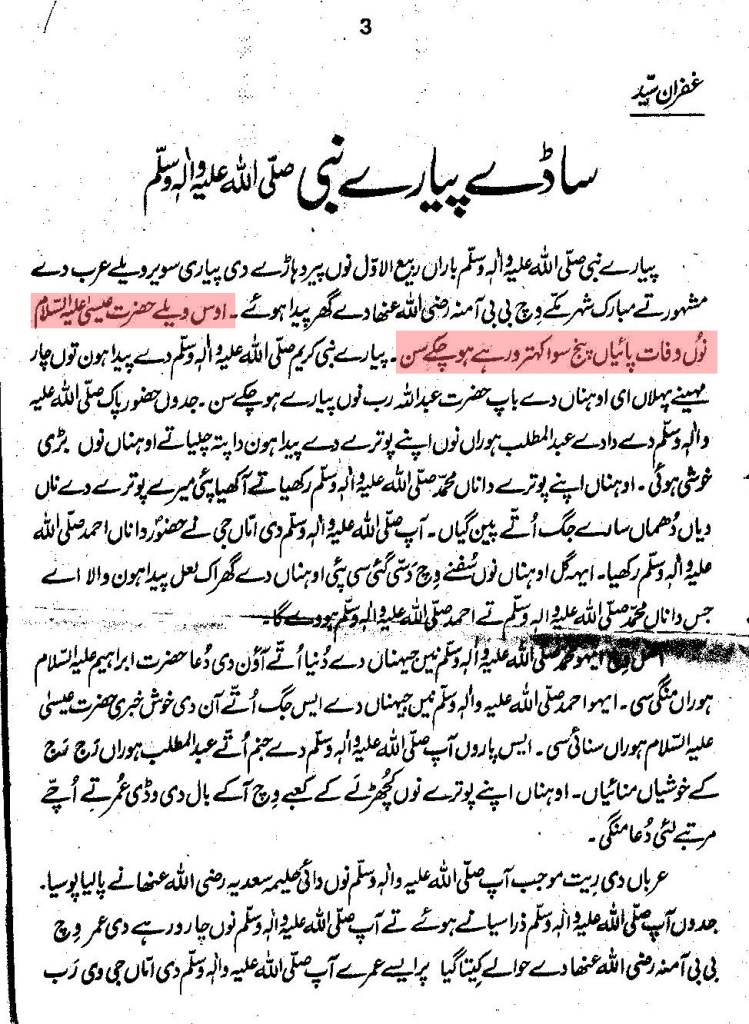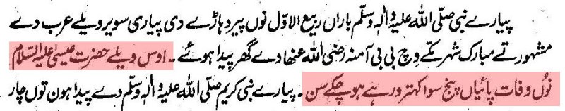 دلیل۔ پنجاب ٹیکسٹ بک کی ساتویں جماعت کی کتاب میں لکھا ہے کہ نبی اکرم ﷺ کی پیدائش کے وقت حضرت عیسیٰ وفات پا چکے تھے۔
