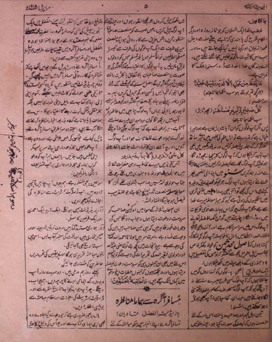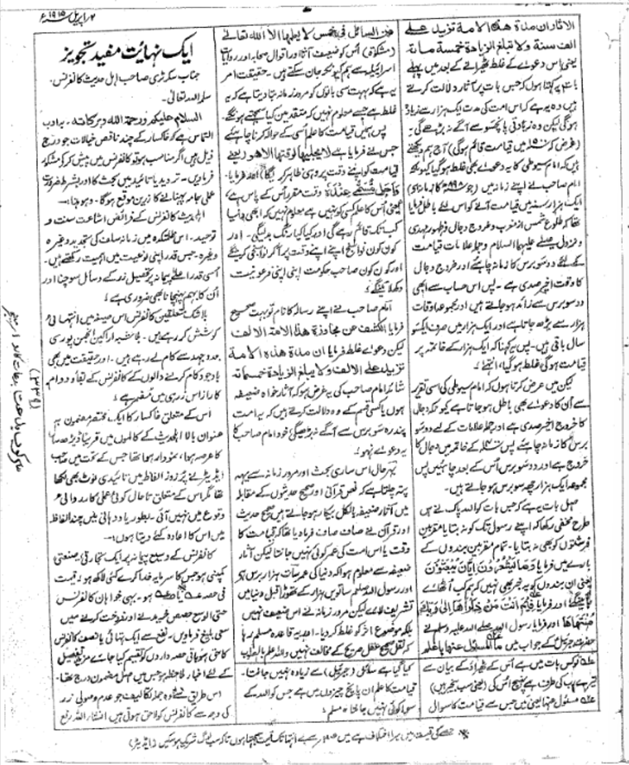 اخبار اہلحدیث ۔ 2 اپریل 1915 کا لنک
