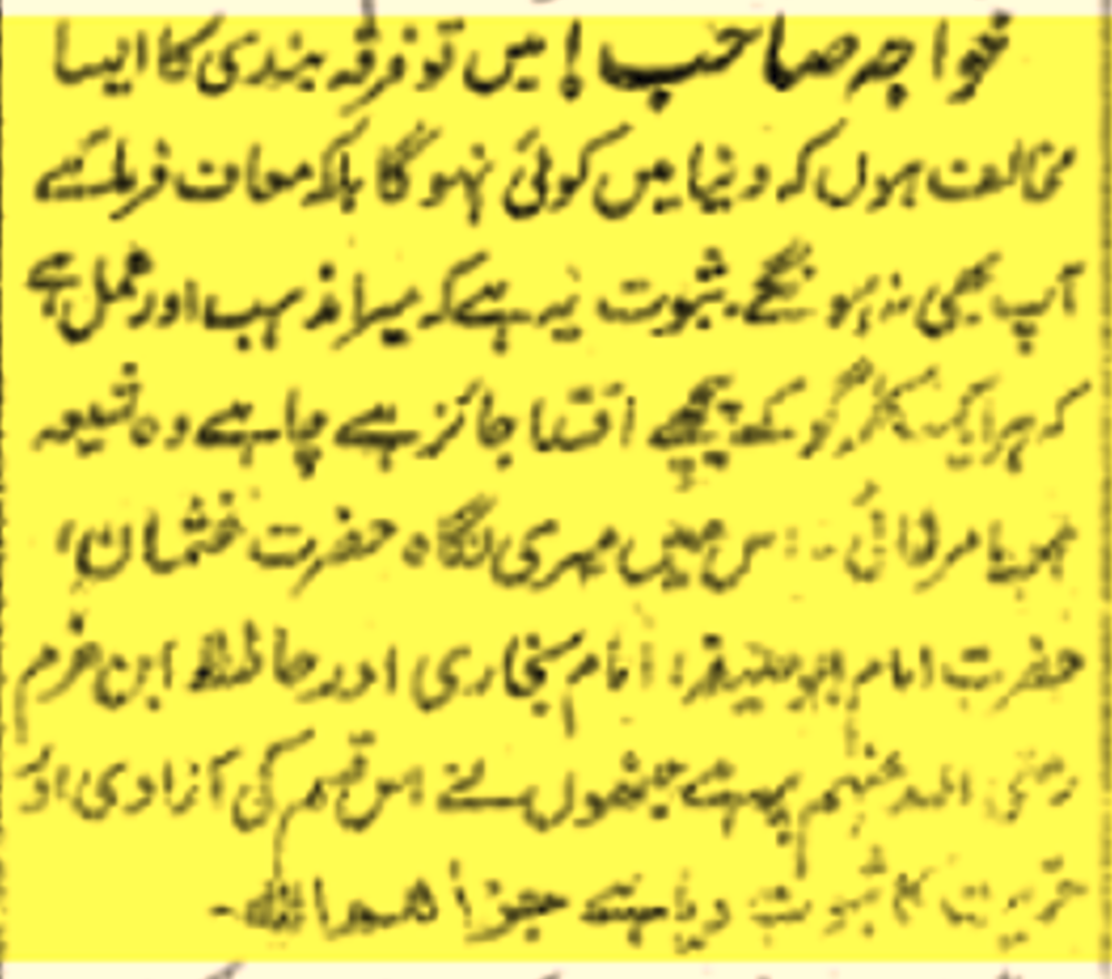 خواجہ صاحب ! میں تو فرقہ بندی کا ایسا