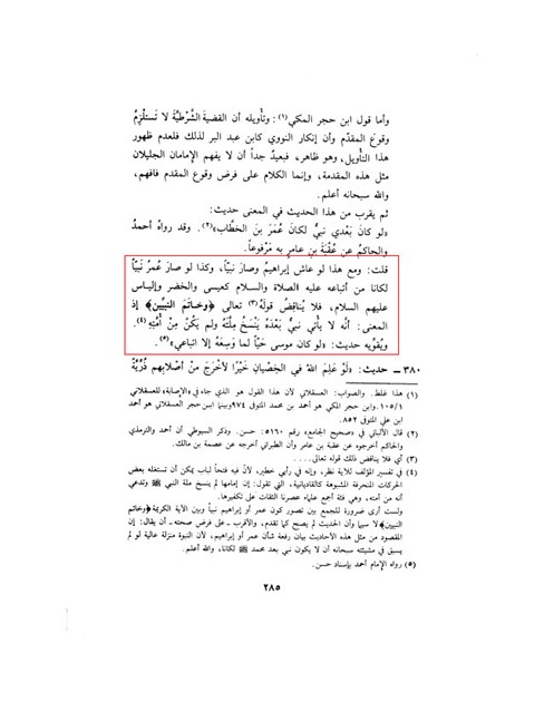 اگر ابراھیم بن محمد ؓ زندہ رہتے اور نبی ہو جاتے اور عمر ؓ بھی نبی ہو جاتے تو ختم نبوت پر کوئی فرق نہ پڑتا کہ خاتم النبیین کا مطلب ہے کہ محمد ﷺ کے بعد ایسا نبی نہیں ہو سکتا جو محمد ﷺ کی نبوت کو منسوخ کر دے ۔ الاسرار المرفوعہ ۔ ملا علی القاری