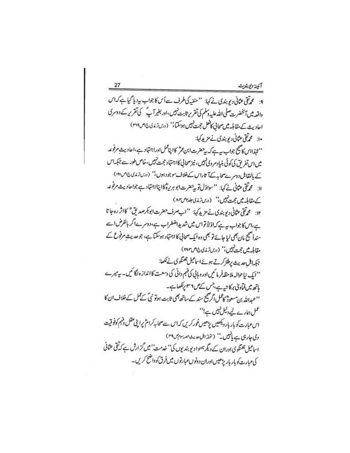 • یہ حدیث یعنی نبی اکرم ﷺ کا قول نہیں ہے بلکہ ایک صحابی کا قول ہے اورتمام غیراحمدی فرقوں کا متفقہ عقیدہ ہے کہ صحابی کا قول حجت نہیں ہوتا۔