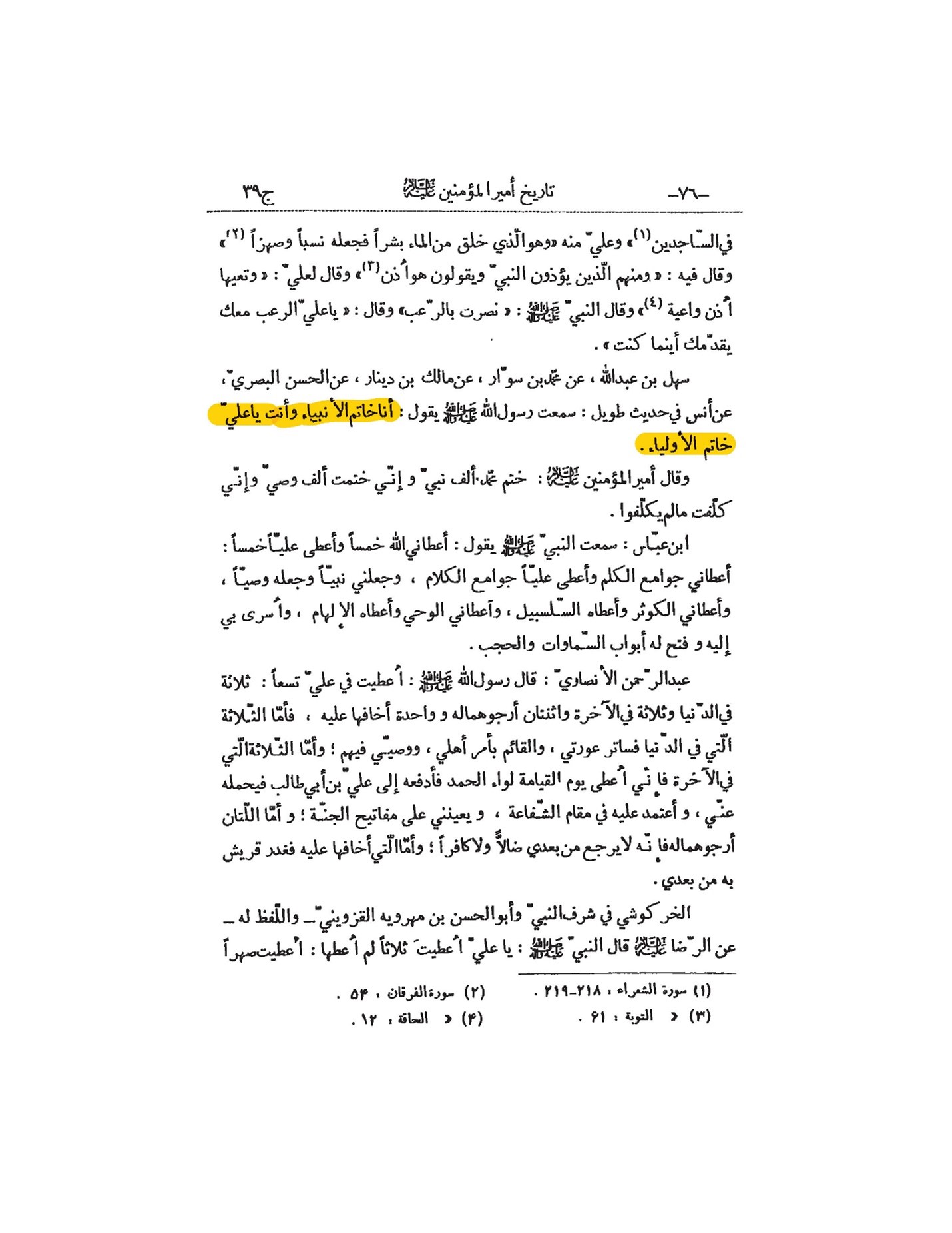 علی ؓ کو محمد ﷺ نے خاتم الاولیاء فرمایا لیکن اس سے یہ مطلب نہیں لیا جاتا کہ ولی اب بند ہو گئے اور کوئی ولی پیدا نہیں ہو گا۔ بہار الانوار