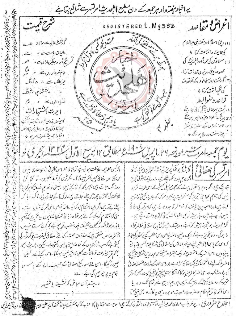 اخبار اہلحدیث 26 اپریل 1907ء کا اصل سکین