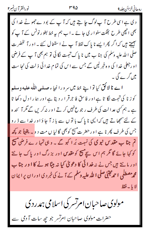 توہین حضرت مسیح موعود علیہ السلام کا الزام